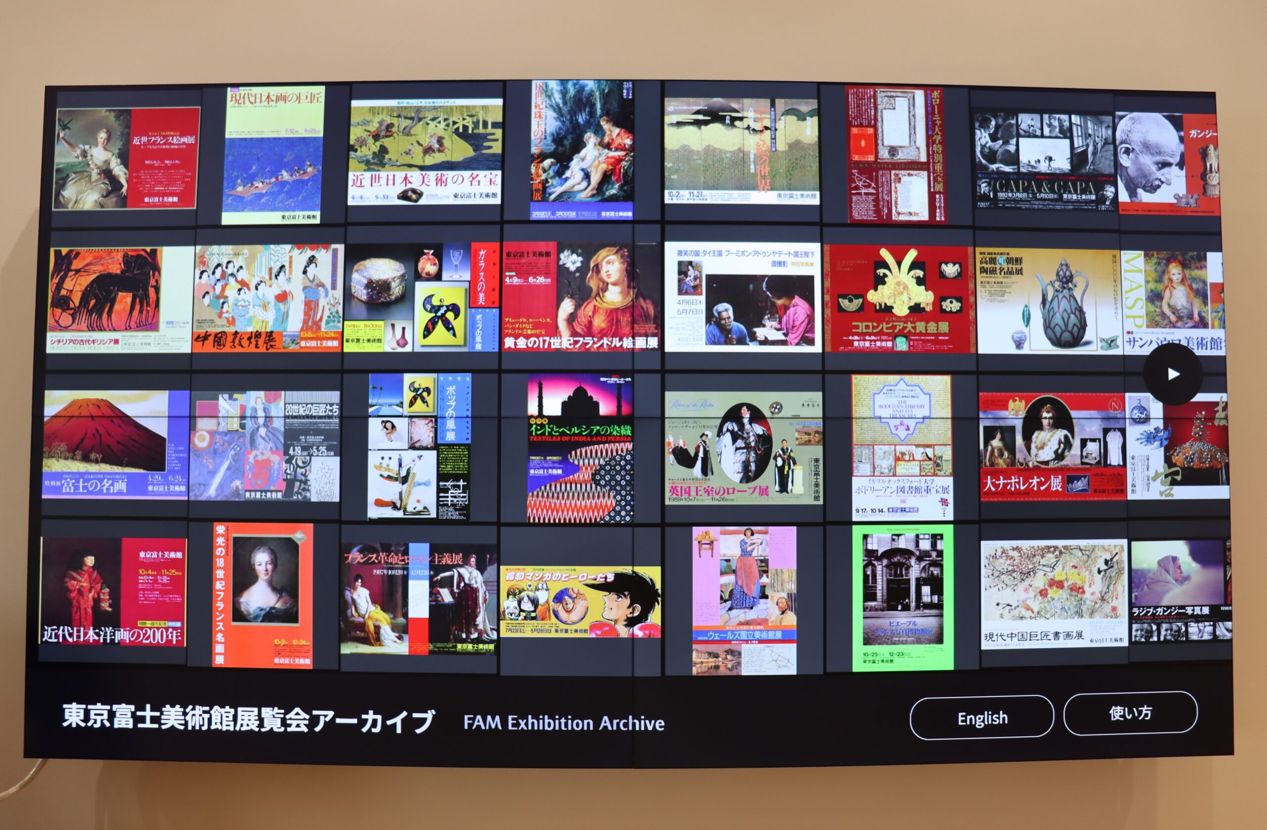 このたび、新館3階ロビーに「東京富士美術館展覧会アーカイブ」サイネージを設置しました。当館がこれまで開催してまいりました「海外文化交流特別展」と「特別展」について簡単なタッチパネル操作で詳しい情報を見ることができます。